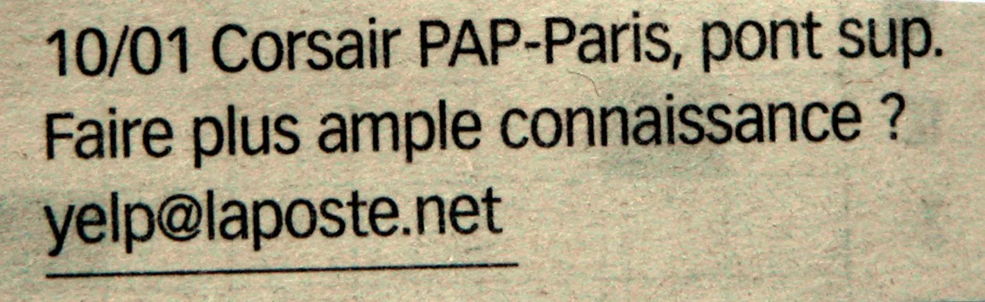 10/01 Corsair Point-à-Pitre-Paris, pont sup. Faire plus ample connaissance ? Yelp@laposte.net
